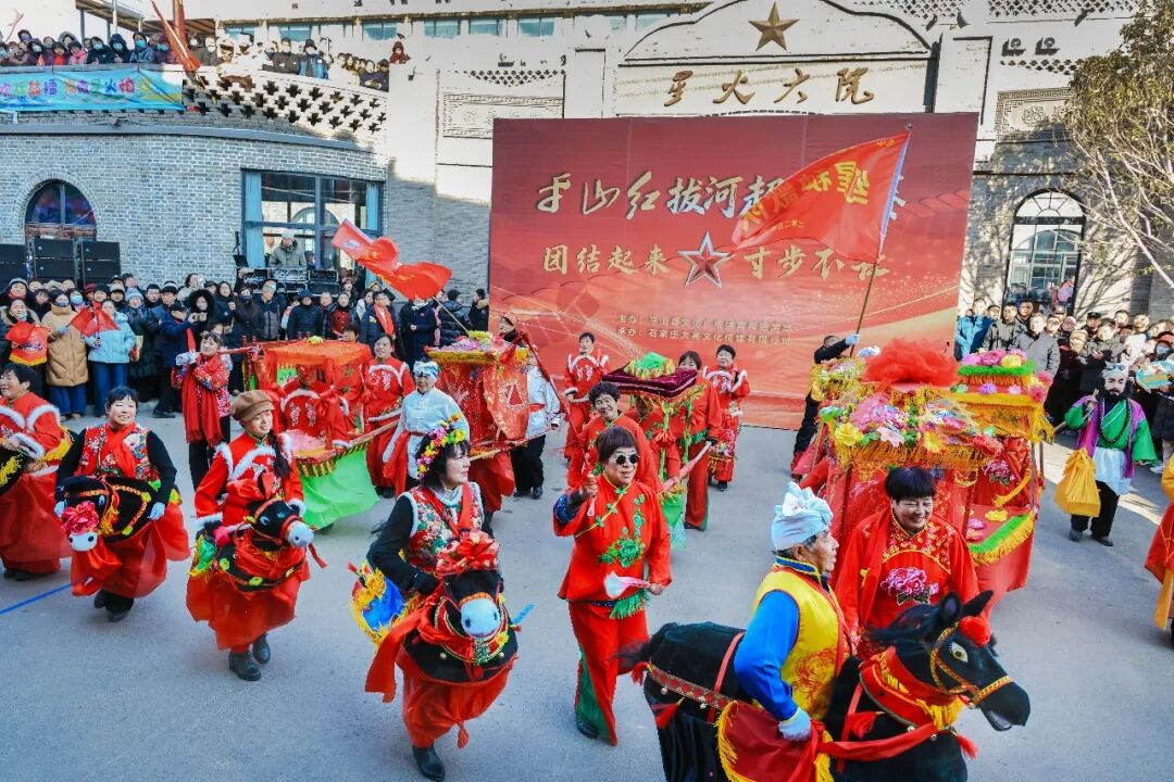 赛场之外,特色文化展演接连登场:《岗南跑驴旱船》率先暖场,平山大秧歌队舞姿蹁跹,舞蹈《八零年代》动感十足,歌伴舞《爱我中华》与红歌联唱深情演绎,传统与现代交融、红色与喜庆碰撞,为观众献上一场精彩的文化盛宴。