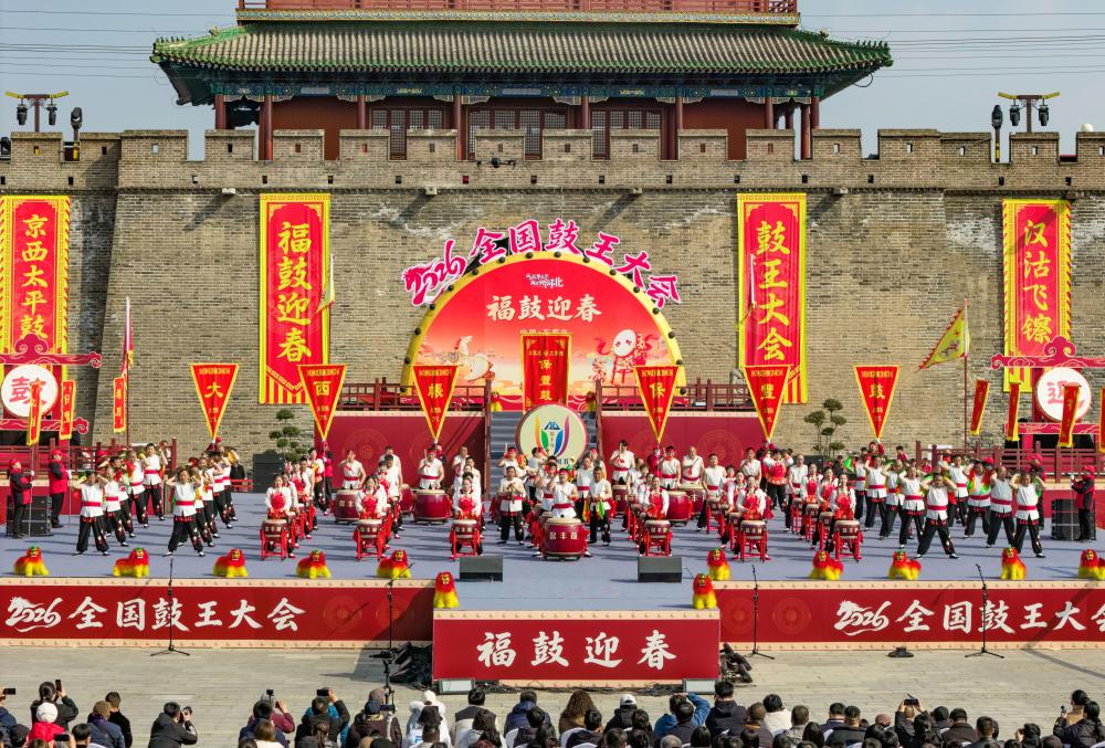 鼓震山河开盛景,韵扬天地谱华章!3月15日(农历正月二十七),2026年全国鼓王大会在河北石家庄正定古城成功举办,来自全国的14支优秀鼓队、千余名演员齐聚“三关雄镇”,以鼓庆春、以鼓祈福,用激昂的锣鼓和铿锵的节奏擂响“十五五”开局之年的奋进强音,为现场及线上观众带来了一场兼具文化底蕴与时代活力的鼓乐盛宴。