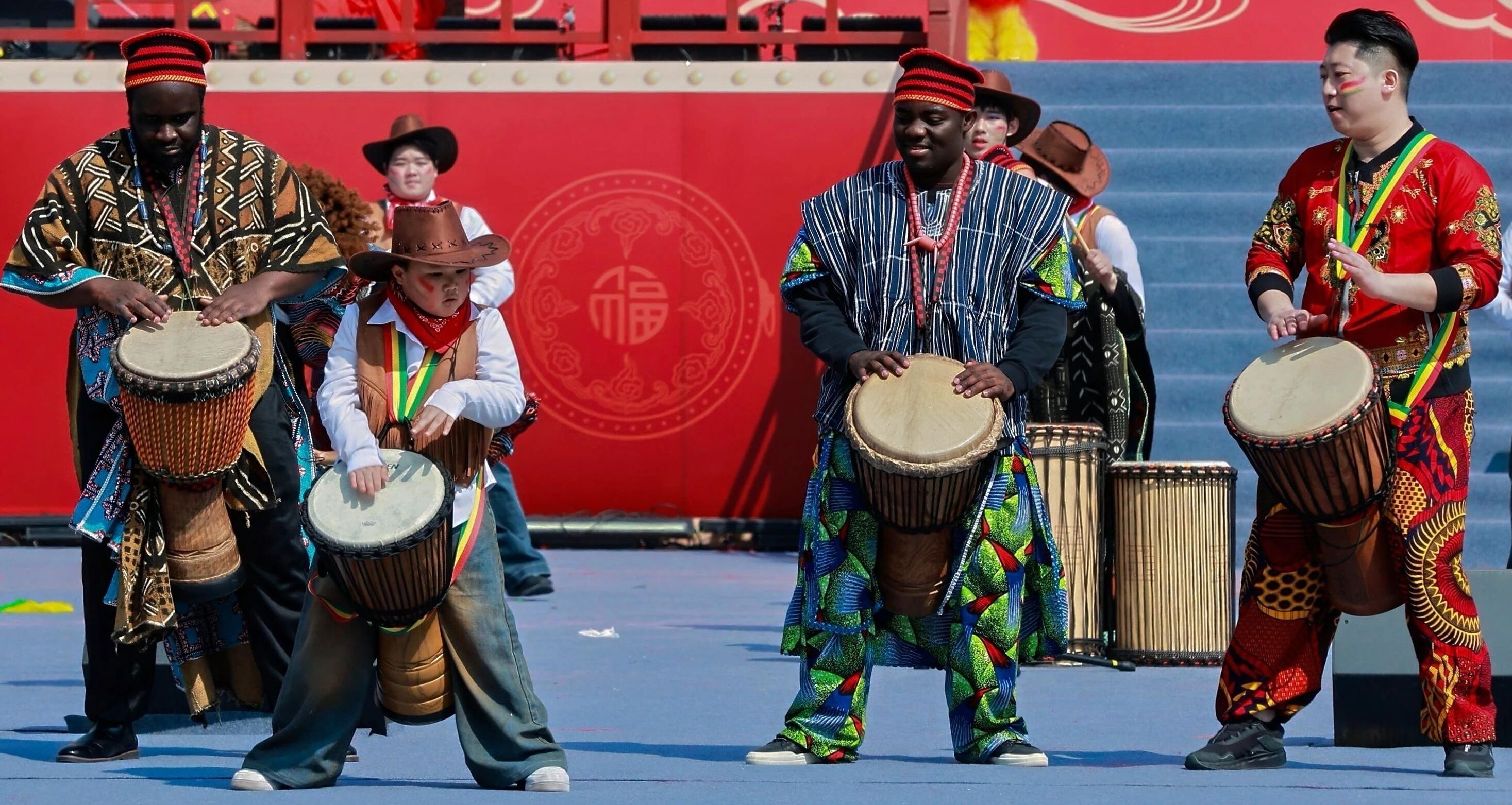 北京《鼓舞太平》节奏明快、天津《汉沽飞镲》韵味十足、陕西《安塞腰鼓》气势磅礴、山西《鼓鸣马跃》刚劲雄浑、河南《冯寨狮鼓》特色鲜明、隆尧县《鼓舞尧乡》雄浑刚健,尽显北方鼓乐的鲜活生命力;吉林《长鼓舞》轻盈灵动、厦门华侨大学《二十四节令鼓》创意十足、非洲鼓《Bala Kulandjan》彰显异域风情,实现东方神韵与环球共鸣;石家庄高新区《保丰迎春》欢快喜庆、《常山新韵》大气豪迈、正定弘文中学《子龙出征》气势如虹、高邑县《汉光胜鼓》鲜活灵动、灵寿县《慈峪龙鼓》豪迈刚健,深度融合本地历史与青春表达,为观众呈现了一场视听交融的文化大餐。