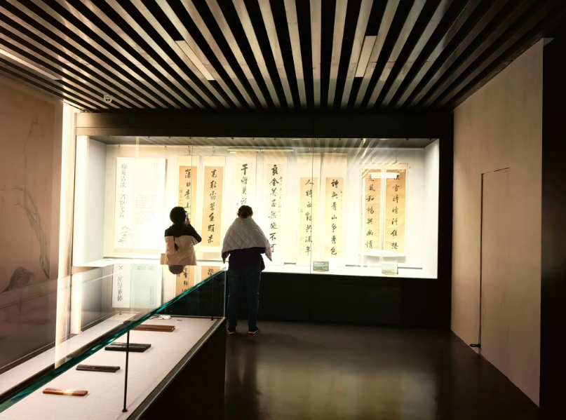 本次展览以时代为轴,分为“清韵正声”“风骨新变”两大篇章,设置“文房雅器”展陈支线,臻选馆藏49件(套)清代至民国楹联佳作,近30件(套)晚清民国时期文房用具,勾勒出三百年间联墨艺术的传承与革新,让观众在篆隶楷行的笔墨变幻中,感受跨越时空的文脉流香。