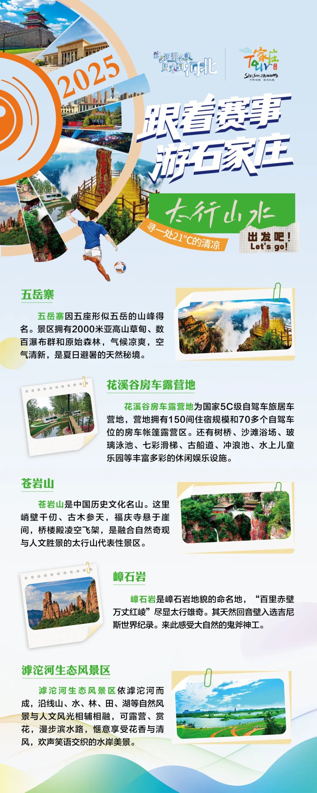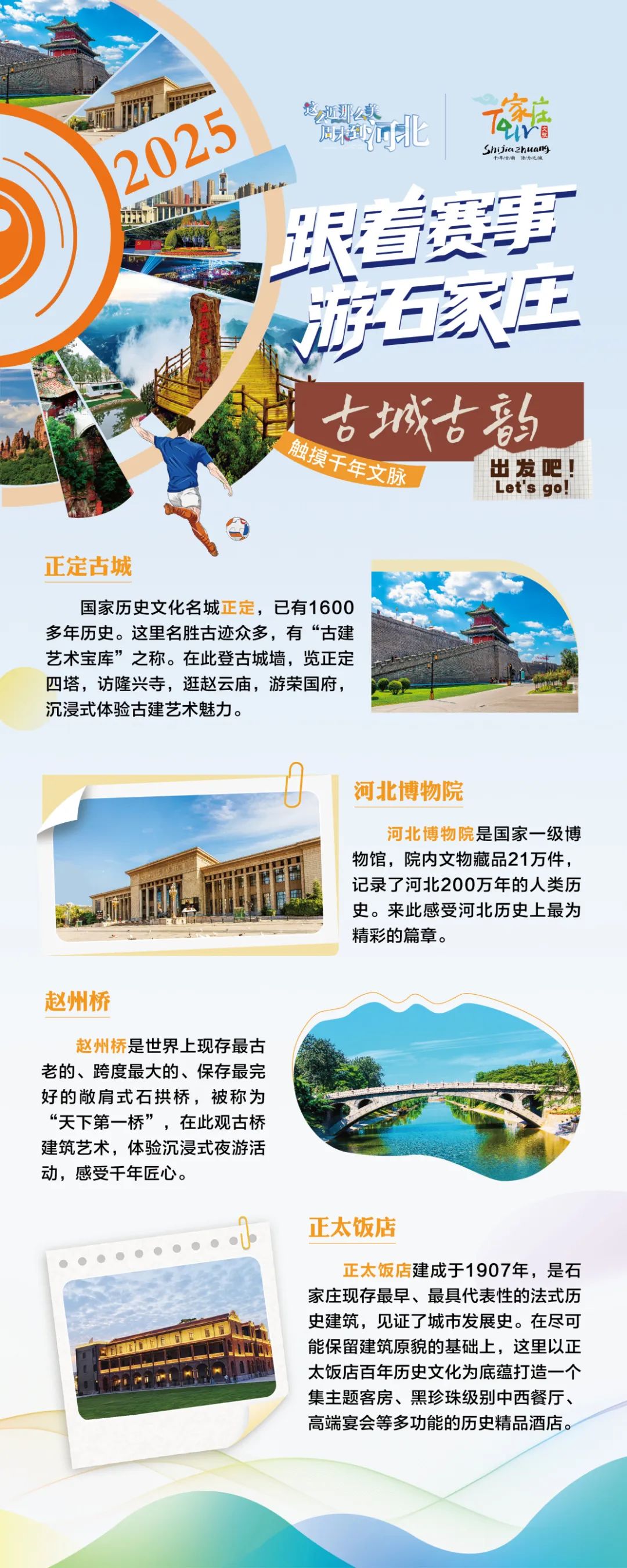 8月10日,2025年河北省五人制足球超级联赛在石家庄热血开赛!为了让市民和游客在观赛之余,深度感受城市的独特韵味,石家庄文旅推出四条主题游线路,将足球赛事与石家庄的历史文化、自然风光相融合。让我们跟着赛事游石家庄,在激情的赛事与美好的旅行中,留下难忘回忆。